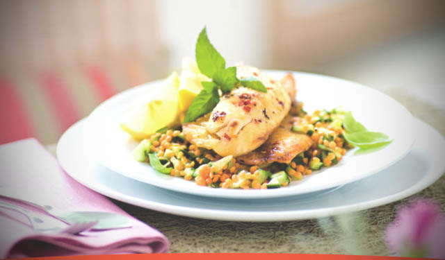 Elabora una receta de Filetes de panga a la plancha con ensalada de lentejas rojas y menta para 4 personas en poco más de 15 minutos y por menos de 10 euros. La dificultad de la receta