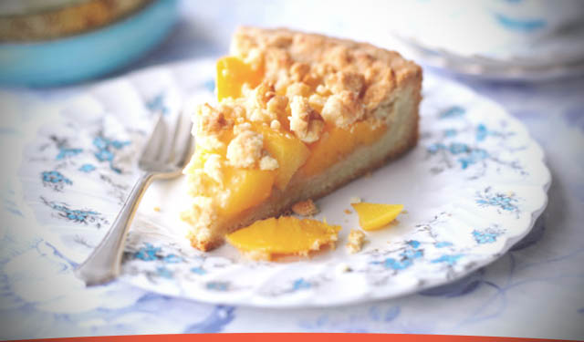 Elabora una receta de Tarta de melocotón con masa desmigada para 12 - 16 personas en poco más de aproximadamente 75 minutos (más tiempo de enfriamiento) y por menos de 5 euros. La dificultad de la receta